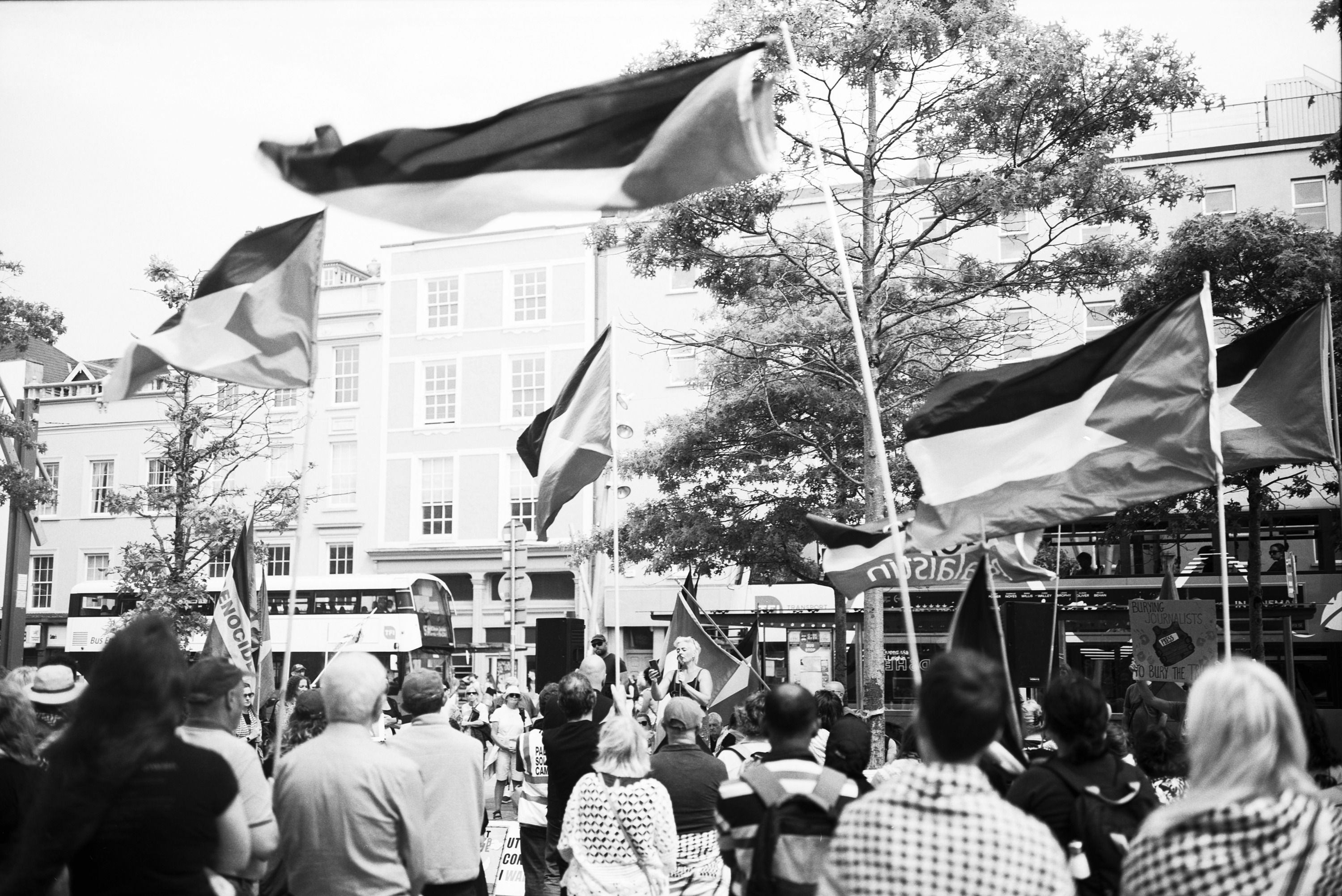 Palestine protest, and anti-racism protest in response to a number of racist attacks in Ireland, on 16/8/2025 in Cork.